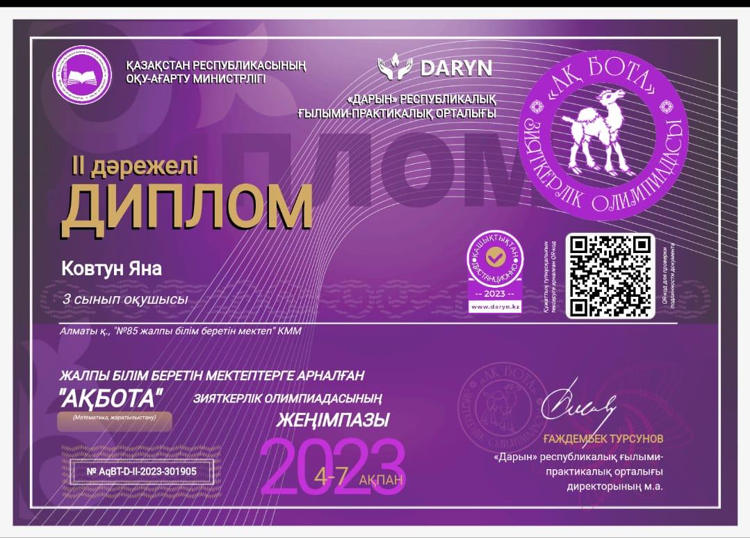 08 февраль 2023 0 1 2 3 4 5 Оқушылар жетістіктері "Ақ бота" олимпиадасының жүлдегерлері, 3 "Г" сынып Призеры олимпиады "Ақ бота", 3 "Г" класс