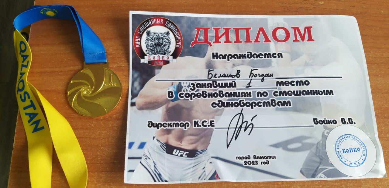 10 апрель 2023 0 1 2 3 4 5 Оқушылар жетістіктері 2 "А" сыныбының оқушысы Беляков Богдан ММА-аралас жекпе-жек жарыстарында 1-орынға ие болды. Беляков Богдан, ученик 2 "А" класса, занял 1 место в соревнованиях по ММА-смешанные единоборства.
