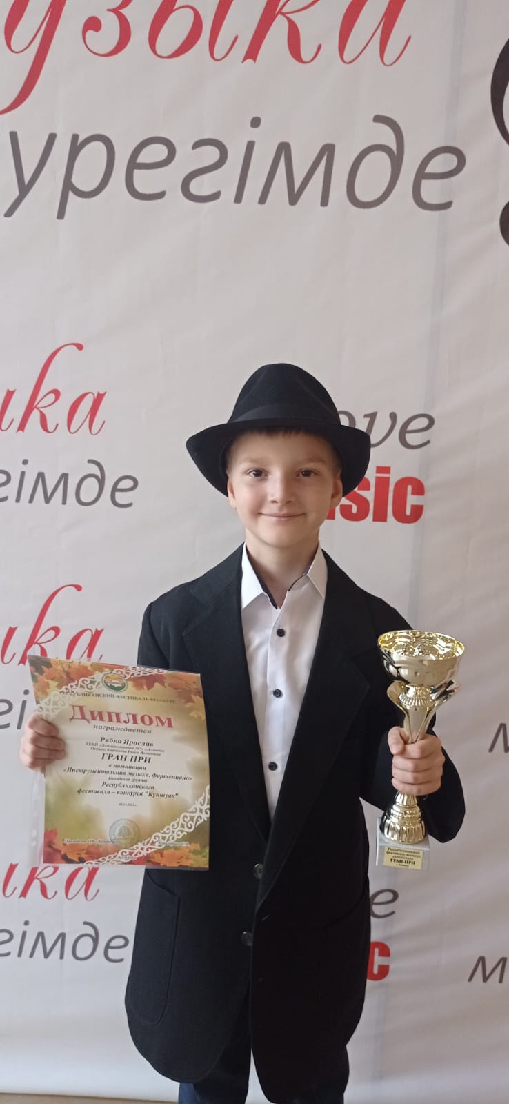09 ноябрь 2023 0 1 2 3 4 5 Оқушылар жетістіктері 3 "Г" сынып оқушысы Рябко Ярослав республикалық фестиваль-байқауда бас жүлдені жеңіп алды. Ученик 3 "Г" класса Рябко Ярослав получил гран при в республиканском фестивале-конкурсе.