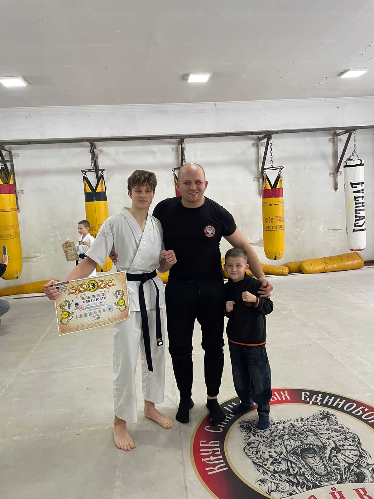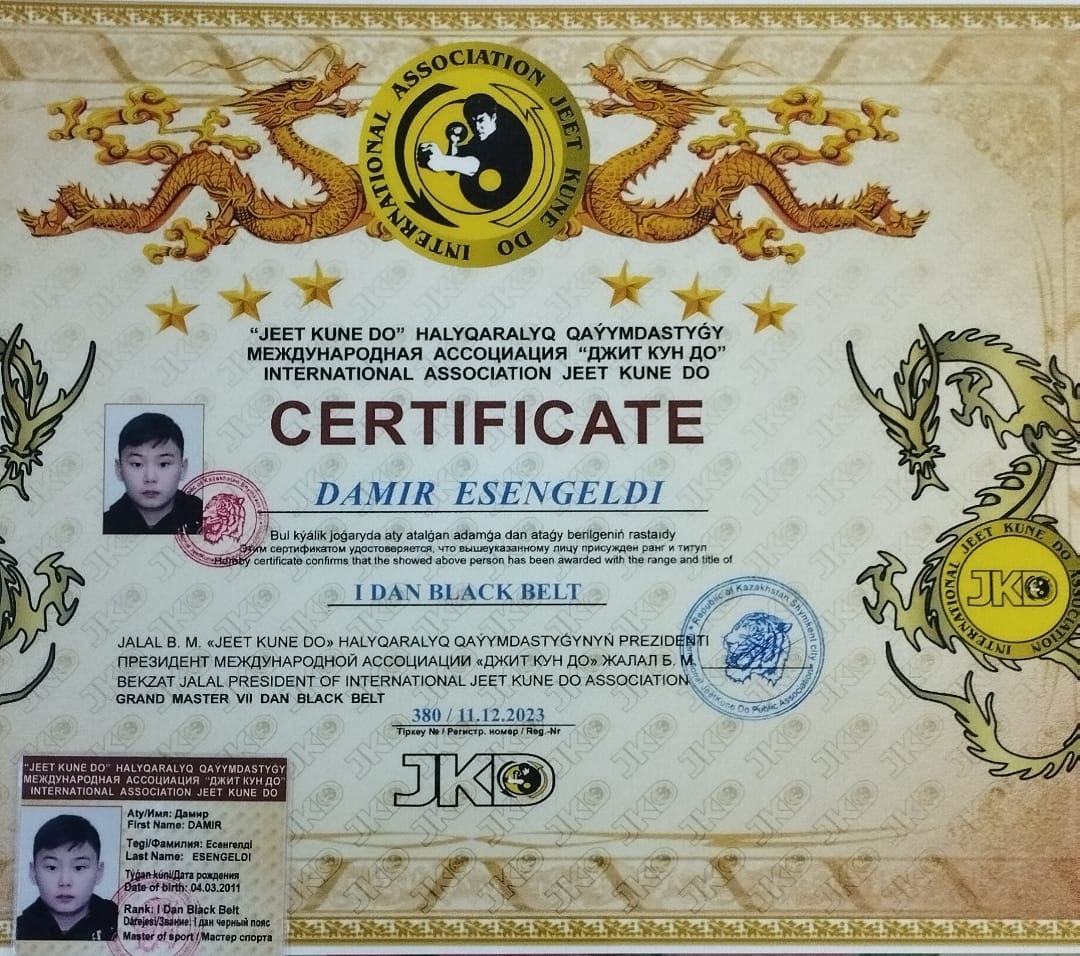 Есенгельді Дамир, ученик 6 "Г" класса, защитил сертификат мастера спорта международного класса по смешанным единоборствам и награжден черным поясом.