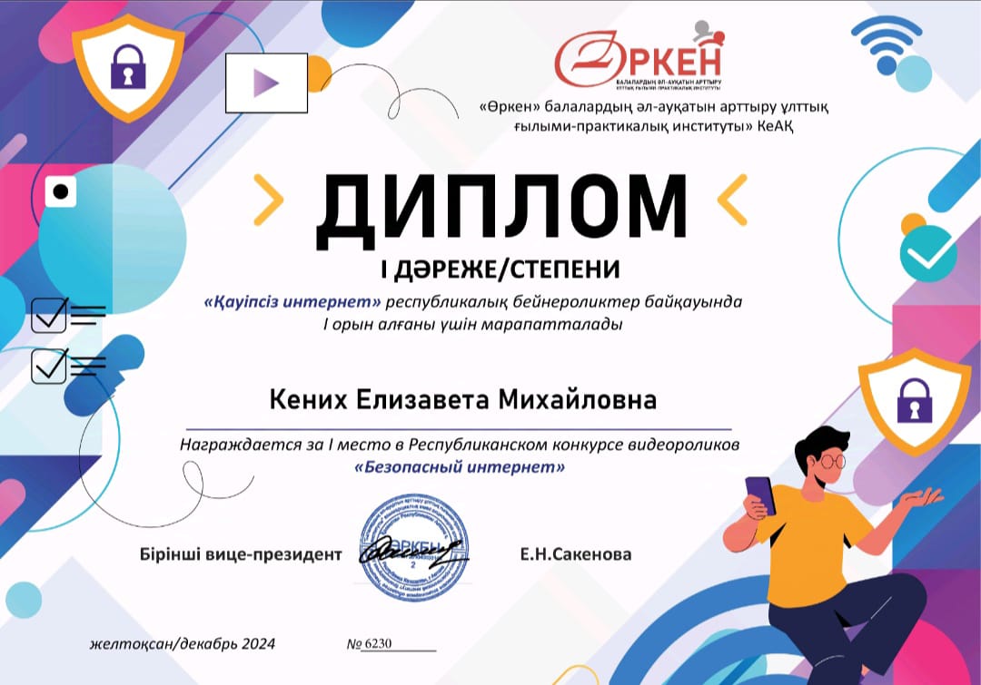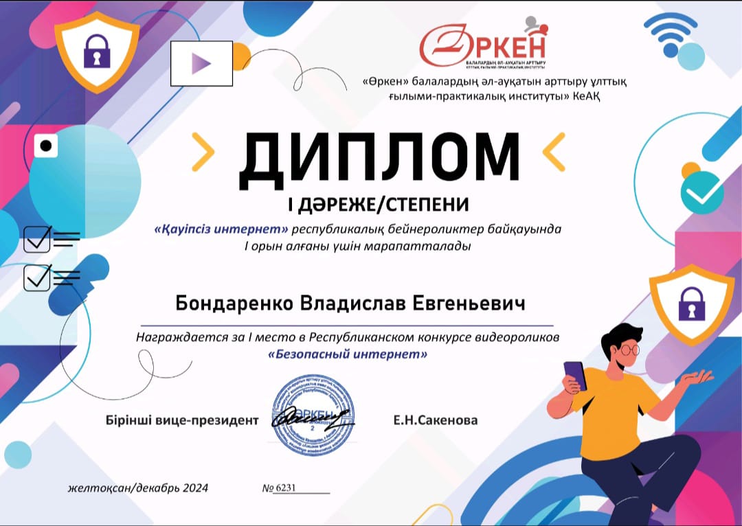 Поздравляем победителей республиканского конкурса видеороликов - Кених Елизавету и Бондаренко Владислава с занятым 1 местом!Руководитель - Садыкова Бибигуль Мухтаровна.
