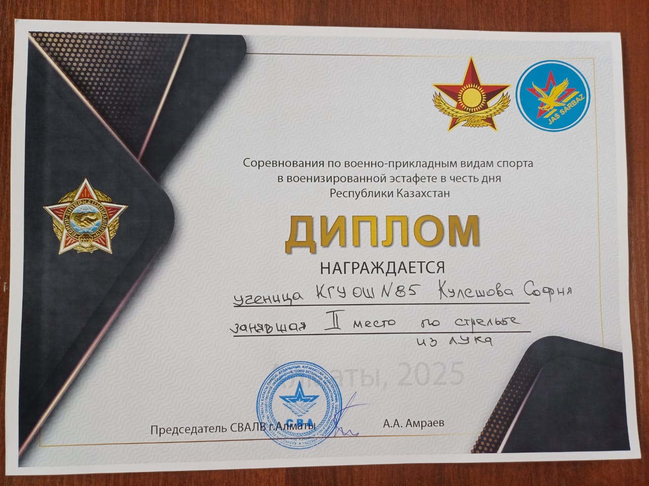 Кулешова София - садақ атудан 2 орын,