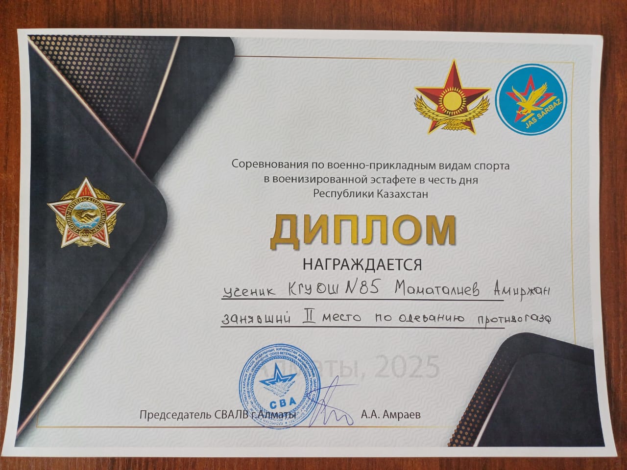 Маматалиев Амиржан - газқағар кию бойынша 2 орын.