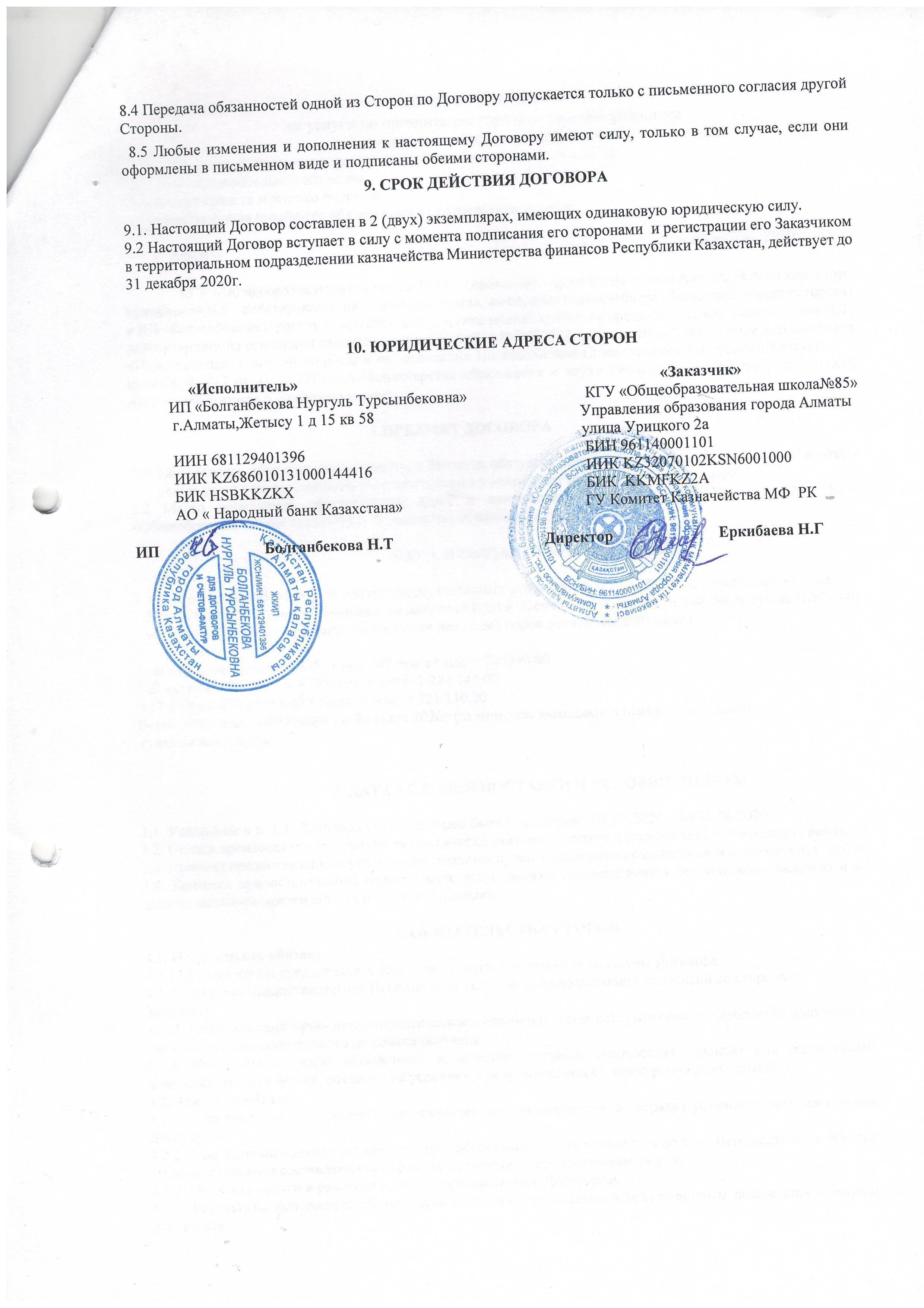 Договор » №85 Орта мектеп