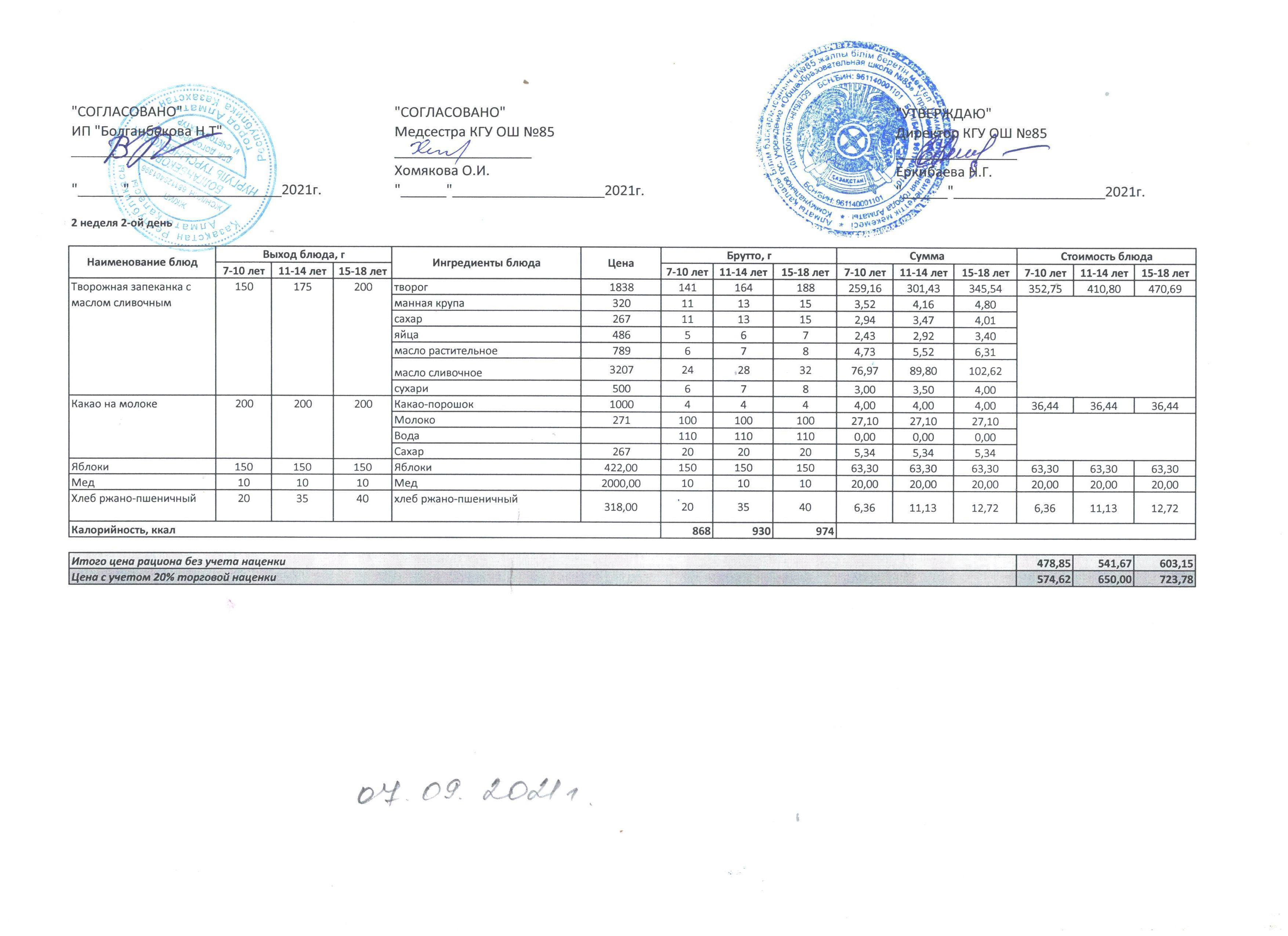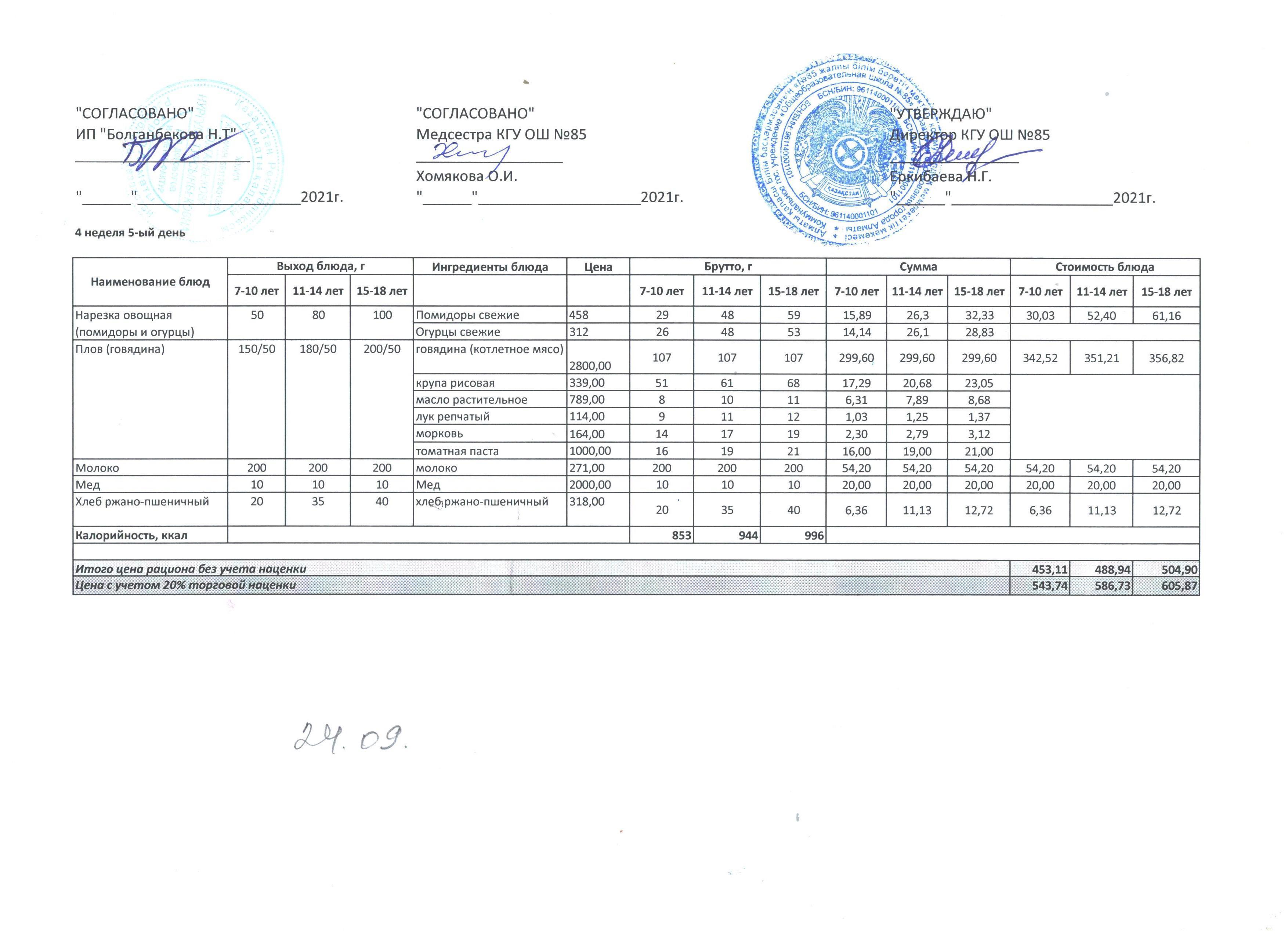 01 сентябрь 2021 0 1 2 3 4 5 Четырехнедельное меню блюд бесплатного питания на лето-осень 2021-2022 уч.г.
