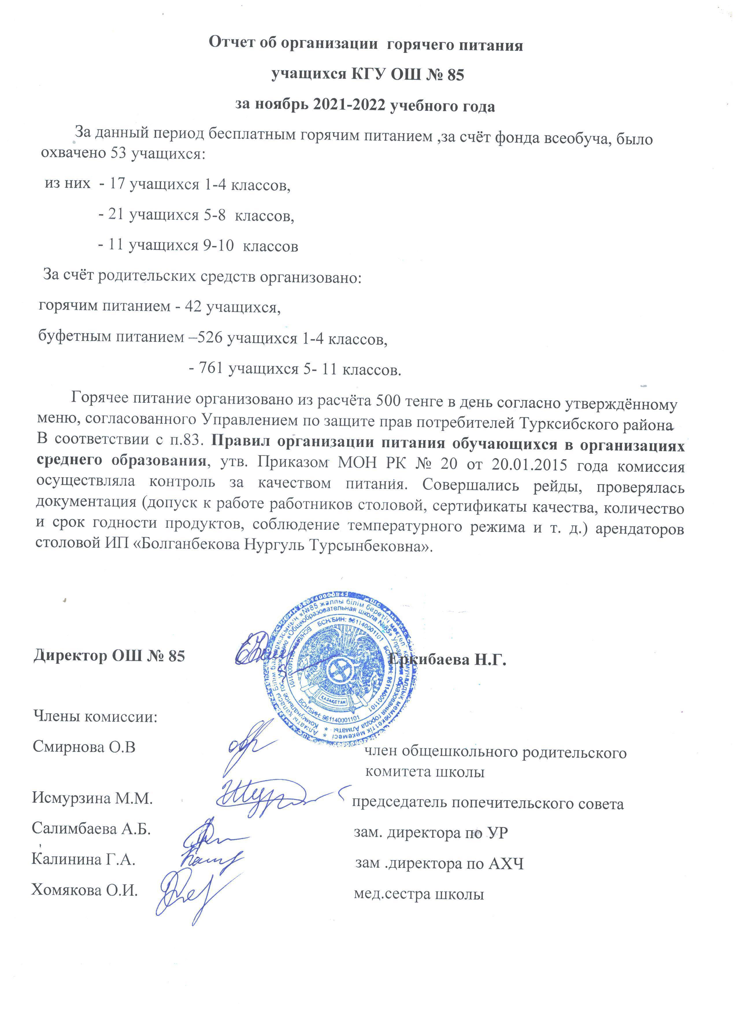 2021-2022 оқу жылының қараша айындағы тамақтануды ұйымдастыру туралы есеп