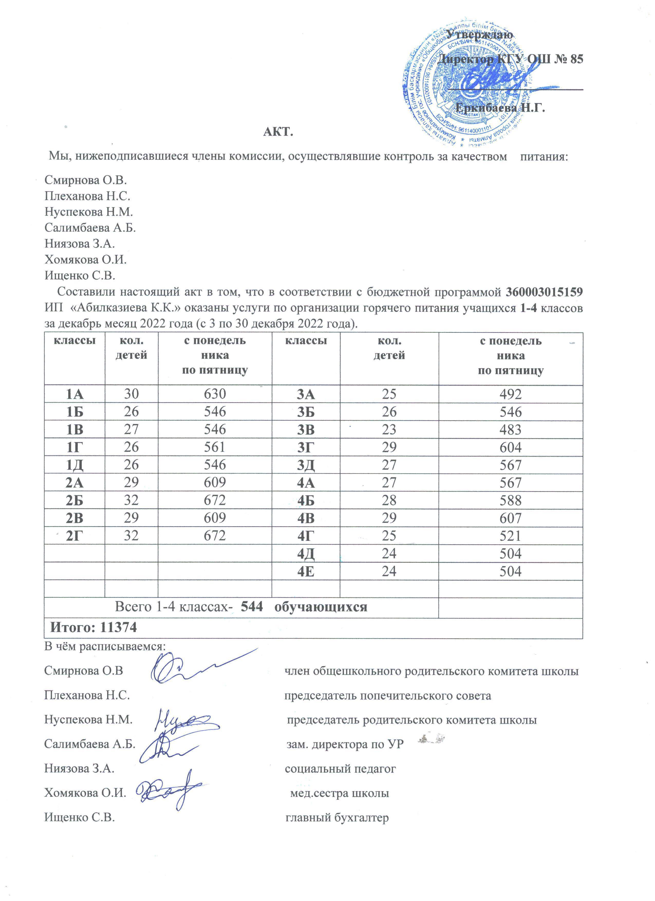 30 декабрь 2022 0 1 2 3 4 5 Тамақтану сапасының мониторингі жөніндегі комиссияның актісі (1-4 сыныптар)