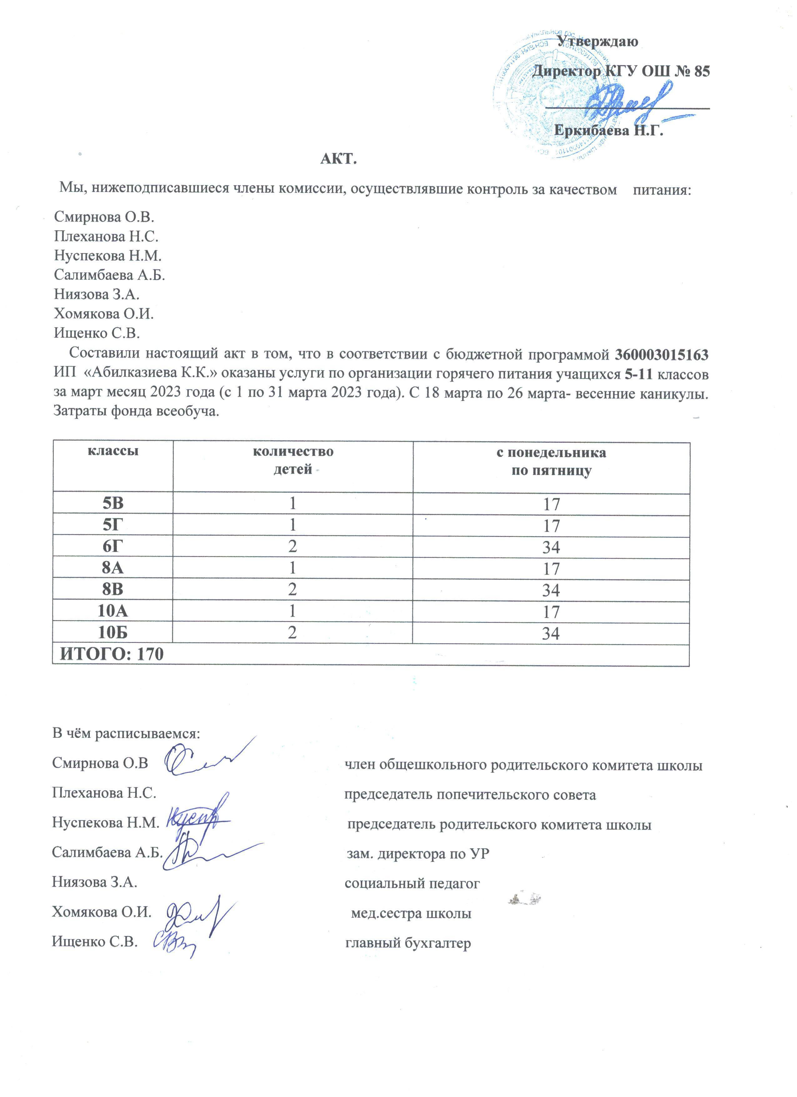 31 март 2023 0 1 2 3 4 5 Тамақтану сапасының мониторингі жөніндегі комиссияның актісі (5-11 сыныптар)