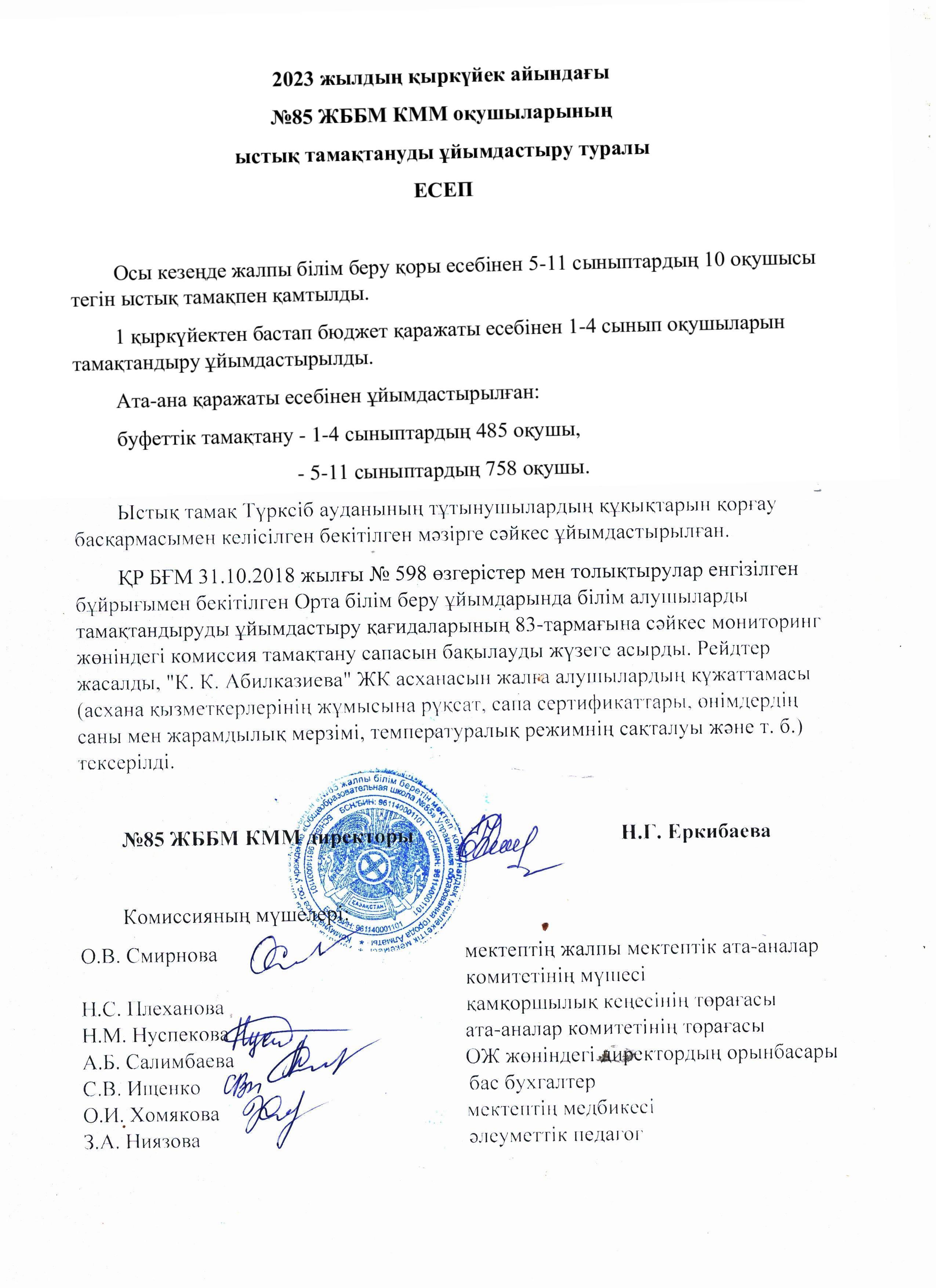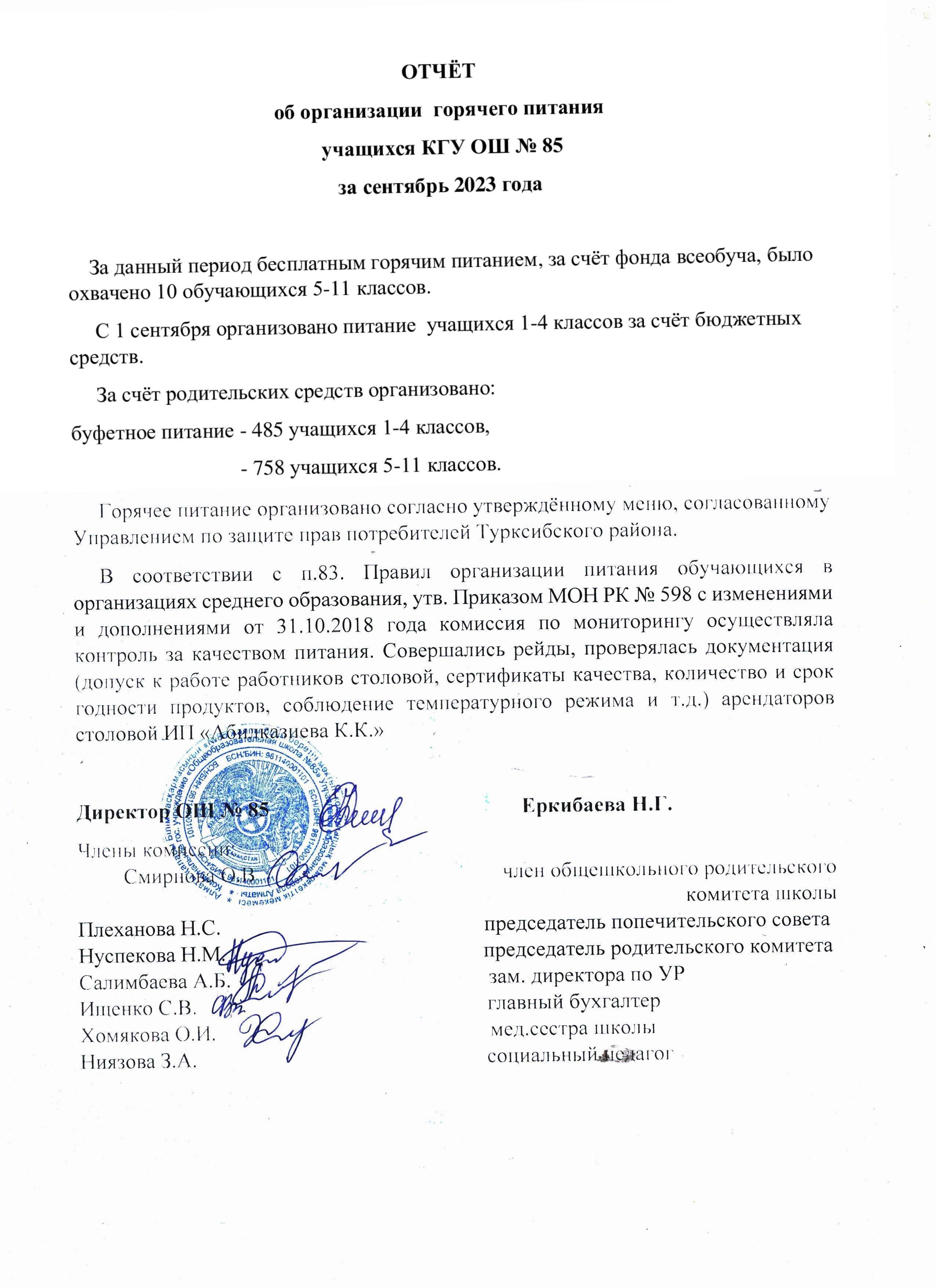 29 сентябрь 2023 0 1 2 3 4 5 Тамақтану сапасының мониторингі жөніндегі комиссияның 2023 жылғы қыркүйектегі есебі