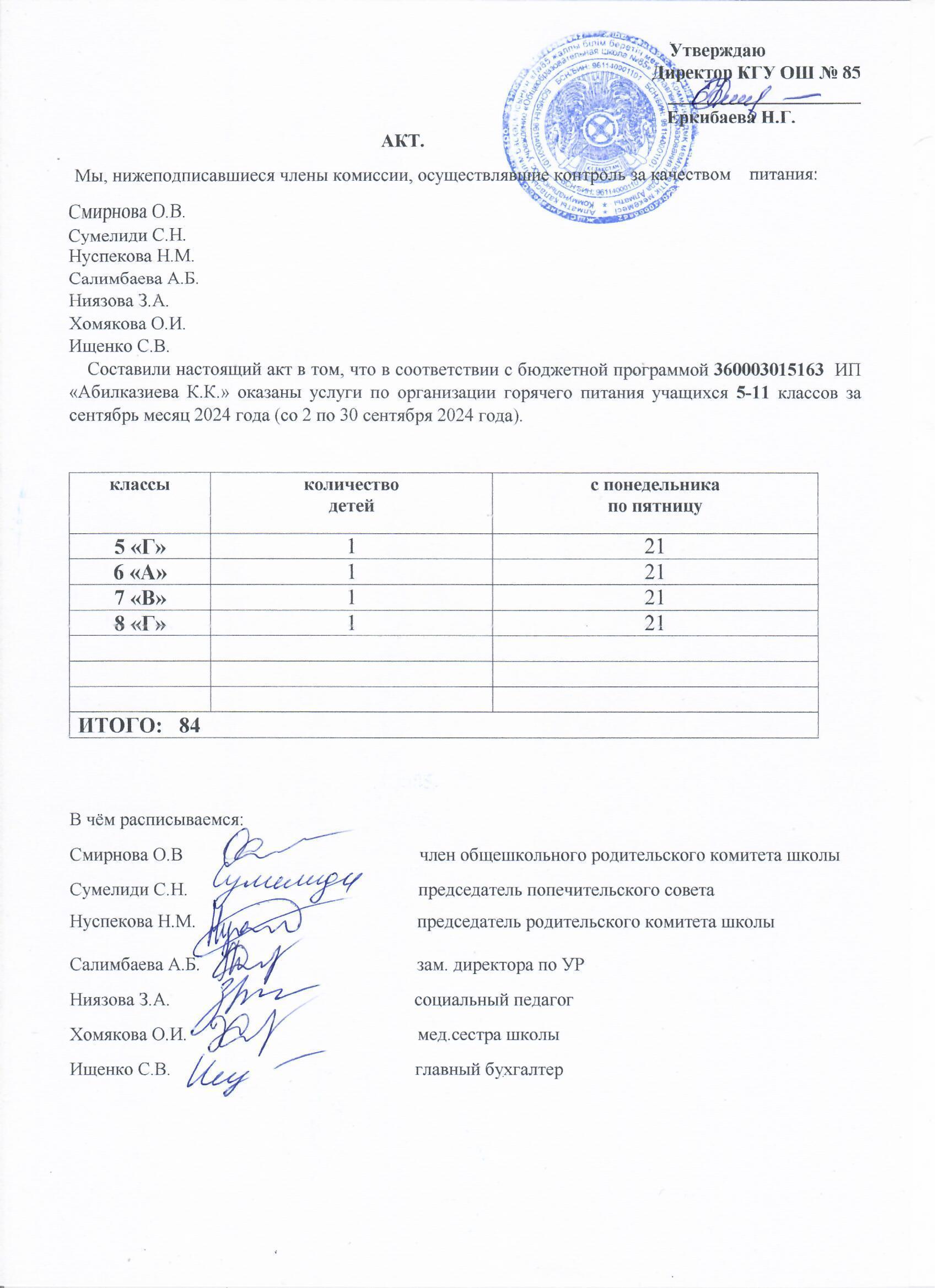 30 сентябрь 2024 0 1 2 3 4 5 Тамақтану сапасының мониторингі жөніндегі комиссияның актісі (5-11 сыныптар)