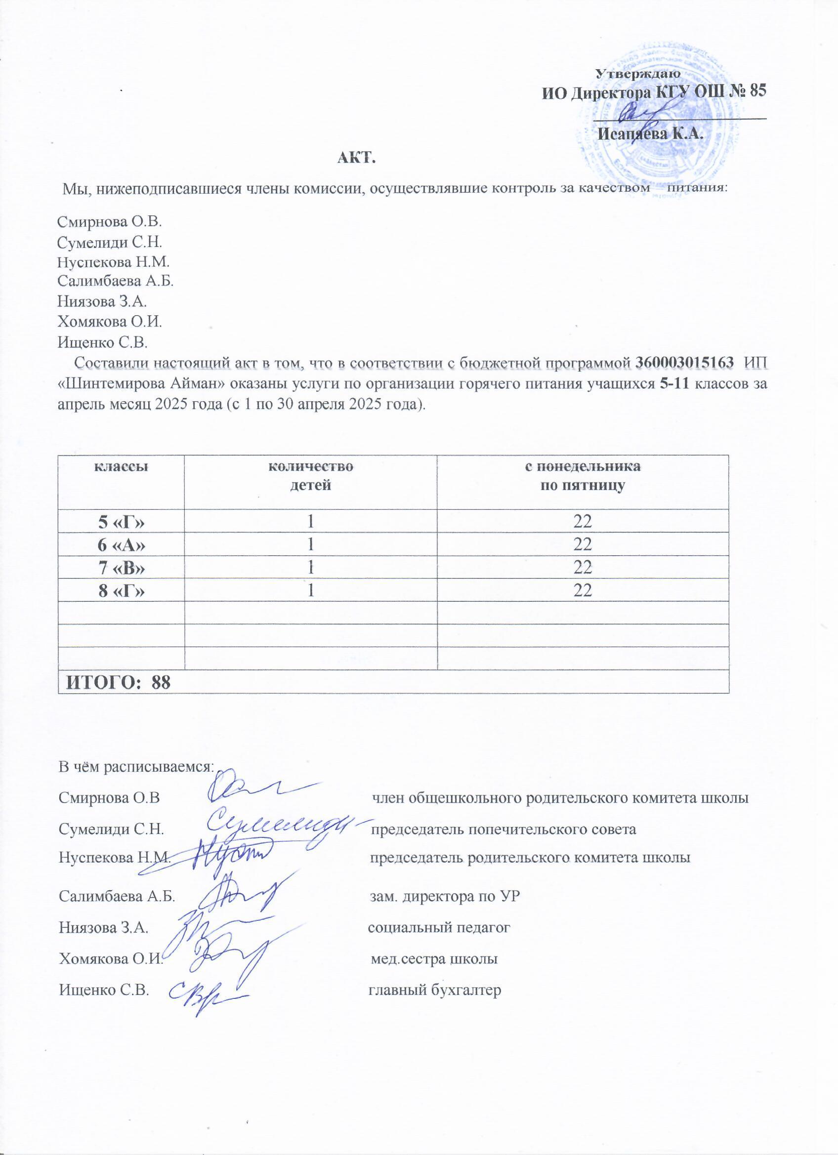 30 апрель 2025 0 1 2 3 4 5 Тамақтану сапасының мониторингі жөніндегі комиссияның актісі (5-11 сыныптар)